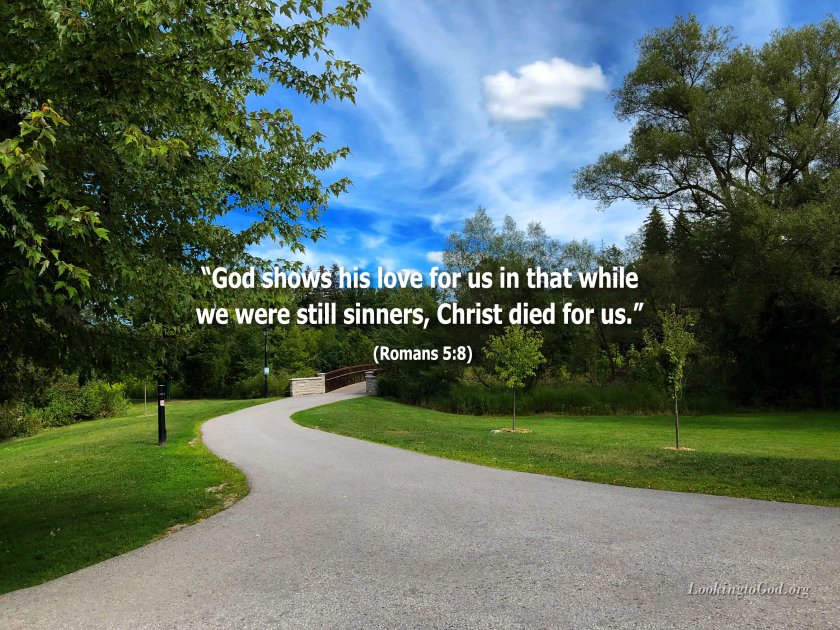 “God shows his love for us in that while we were still sinners, Christ died for us. Since, therefore, we have now been justified by his blood, much more shall we be saved by him from the wrath of God. For if while we were enemies we were reconciled to God by the death of his Son, much more, now that we are reconciled, shall we be saved by his life.” (Romans 5:8-10)