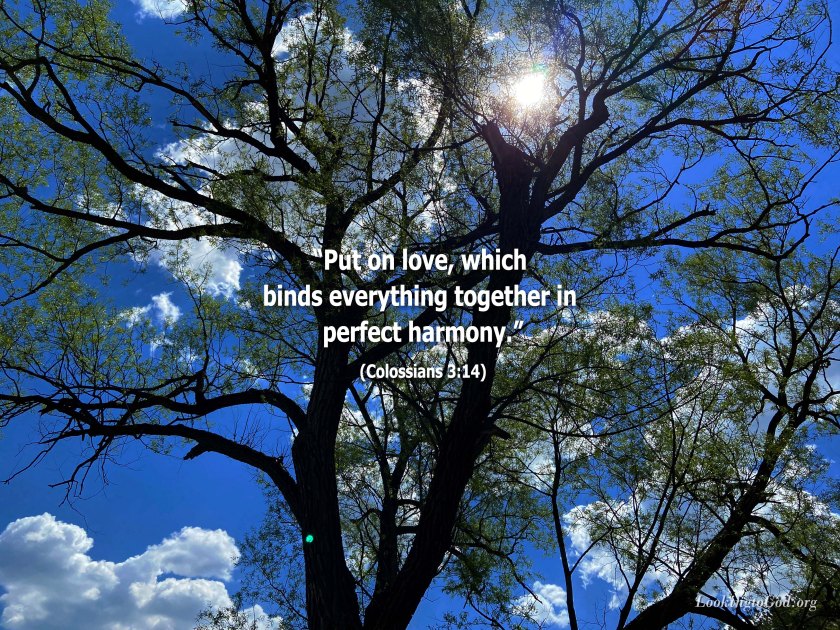 “Put on then, as God’s chosen ones, holy and beloved, compassionate hearts, kindness, humility, meekness, and patience, bearing with one another and, if one has a complaint against another, forgiving each other; as the Lord has forgiven you, so you also must forgive. And above all these put on love, which binds everything together in perfect harmony.”