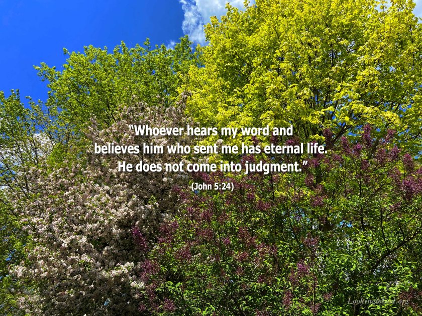 “Truly, truly, I say to you, whoever hears my word and believes him who sent me has eternal life. He does not come into judgment, but has passed from death to life.”