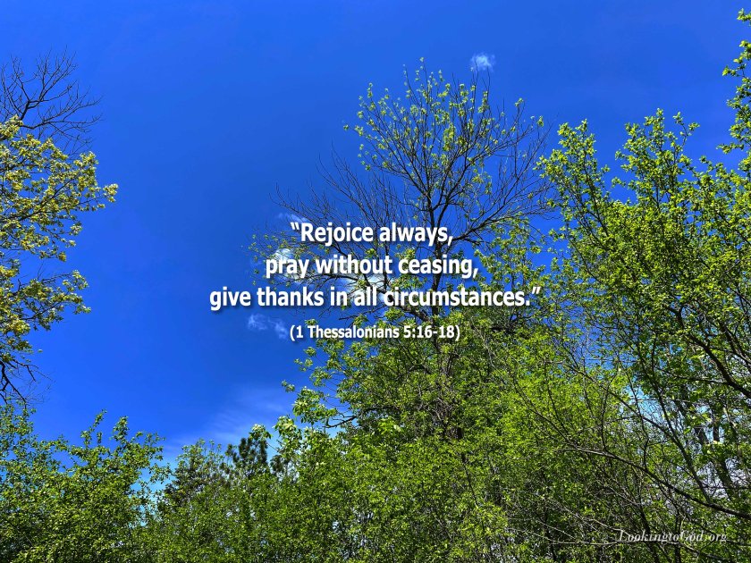 “Rejoice always, pray without ceasing, give thanks in all circumstances; for this is the will of God in Christ Jesus for you.”