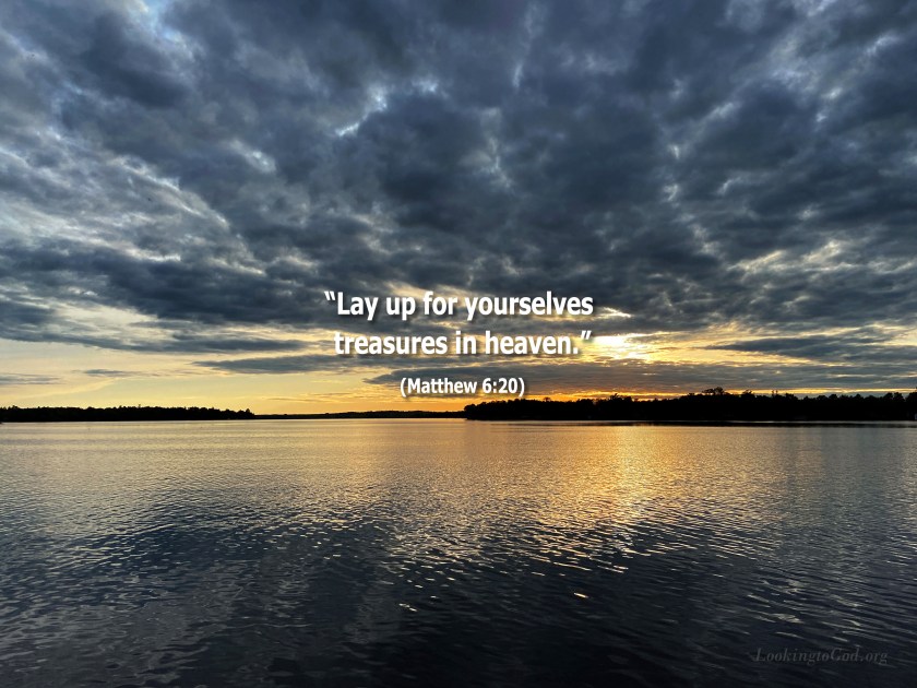 “Do not lay up for yourselves treasures on earth, where moth and rust destroy and where thieves break in and steal, but lay up for yourselves treasures in heaven, where neither moth nor rust destroys and where thieves do not break in and steal. For where your treasure is, there your heart will be also.”