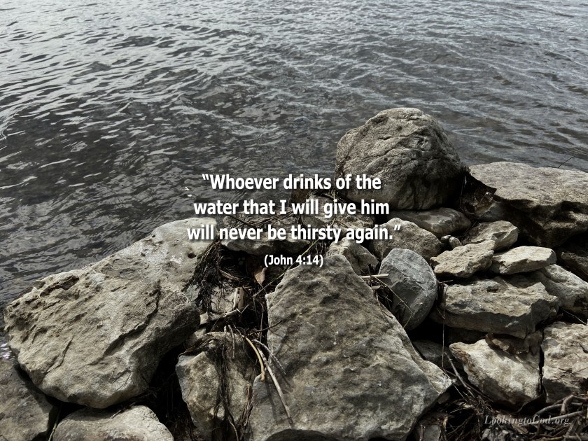 “Jesus said to her, ‘Everyone who drinks of this water will be thirsty again, but whoever drinks of the water that I will give him will never be thirsty again. The water that I will give him will become in him a spring of water welling up to eternal life.'”