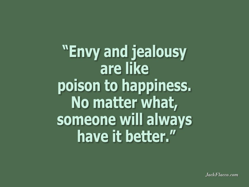 Envy and jealousy are like poison to happiness. No matter what, someone will always have it better.